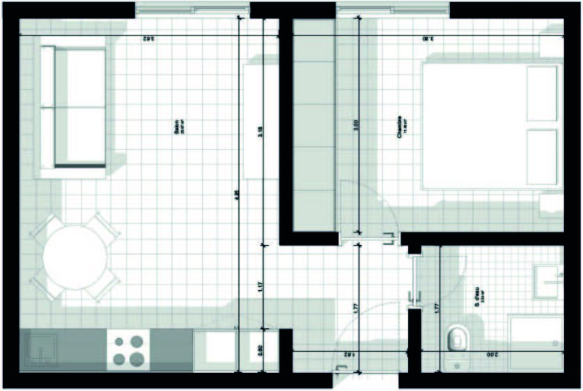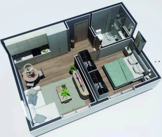 Parfait pour les jeunes couples ou célibataires souhaitant plus de confort, cet appartement comprend une chambre spacieuse et un salon lumineux. L’espace